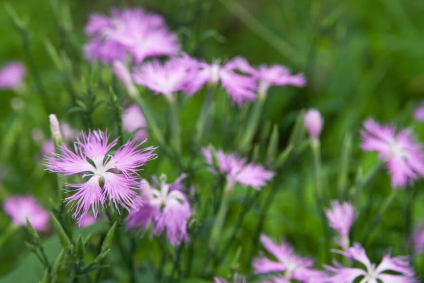 花びらの先が細かく割け、細い糸をまとったような繊細な印象の花を咲かせるナデシコ。花期が春から秋までの約半年ととても長く、次々に花が咲く多年草です。