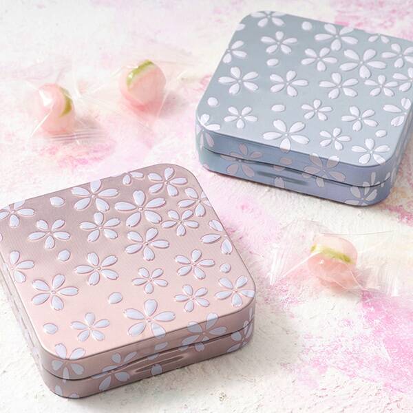 桜の花びらをデザインした缶に、さくらんぼ風味のキャンディが入っています。お菓子を食べ終わったあとは小物を入れるなど活用してみてくださいね。