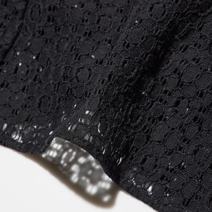 こちらがユニクロで販売されている「レースブラウス」です。透け感のあるおしゃれなレースが使われているアイテムです。レース素材のアイテムながら、かわいすぎないブラウスなので、きれい目コーデにも活用できます。