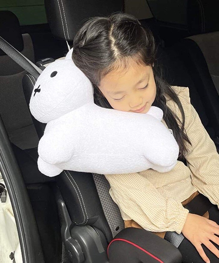 可愛らしいミッフィーの体が枕として首を支えてくれるシートベルトクッションで、車で過ごす時間が楽しくなるアイテムです。