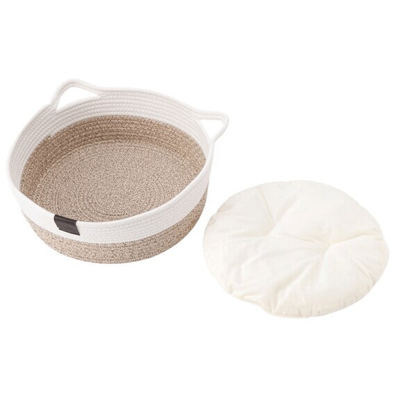 ロープタイプのベッドとクッションがセットに。ネコちゃんがくつろぎたくなるフォルムがかわいいですね。付属のクッションは手洗いにてお洗濯が可能です。