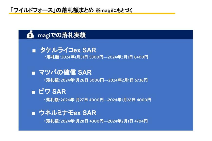 5. 「ワイルドフォース」magiでの落札実績まとめ