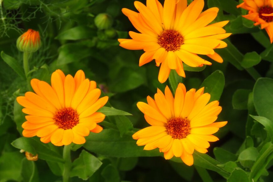 「キンセンカ」とも呼ばれ、切り花としてもよく見かけるカレンデュラ。こぼれ種でも増えるので、一度植えると毎年のように花が咲きます。
