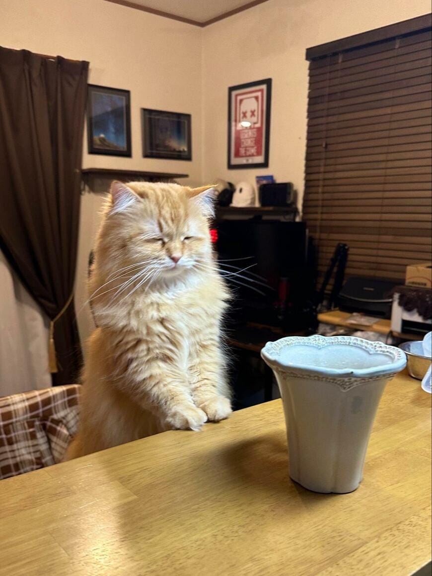 ちょっと飲み過ぎたんじゃない……!?猫ちゃんの面白かわいいワンシーンがX(旧Twitter)で注目を集めています。