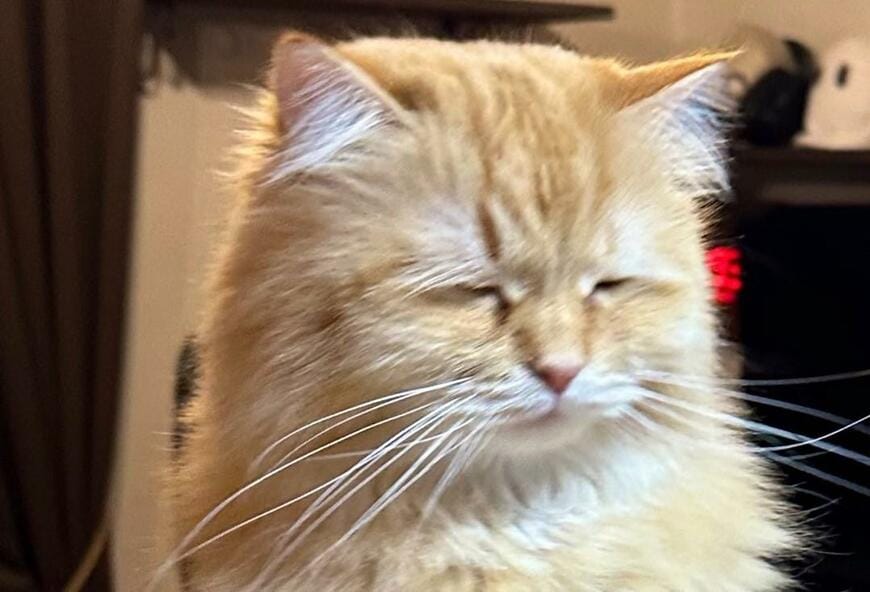 『大将、強めのちゅ~るちょうだい…』そんなコメントとともに投稿されたのは一枚の写真でした。そこに写っているのは、猫の女の子「エマ」ちゃんです。