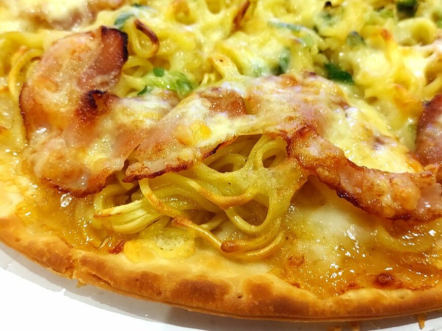 天下一品の看板メニューらしい濃厚な味わい。まるでラーメンを食べているような再現度の高さには驚きですね。サクサクとした生地にチーズもピザハットらしさが出ていたように感じました。