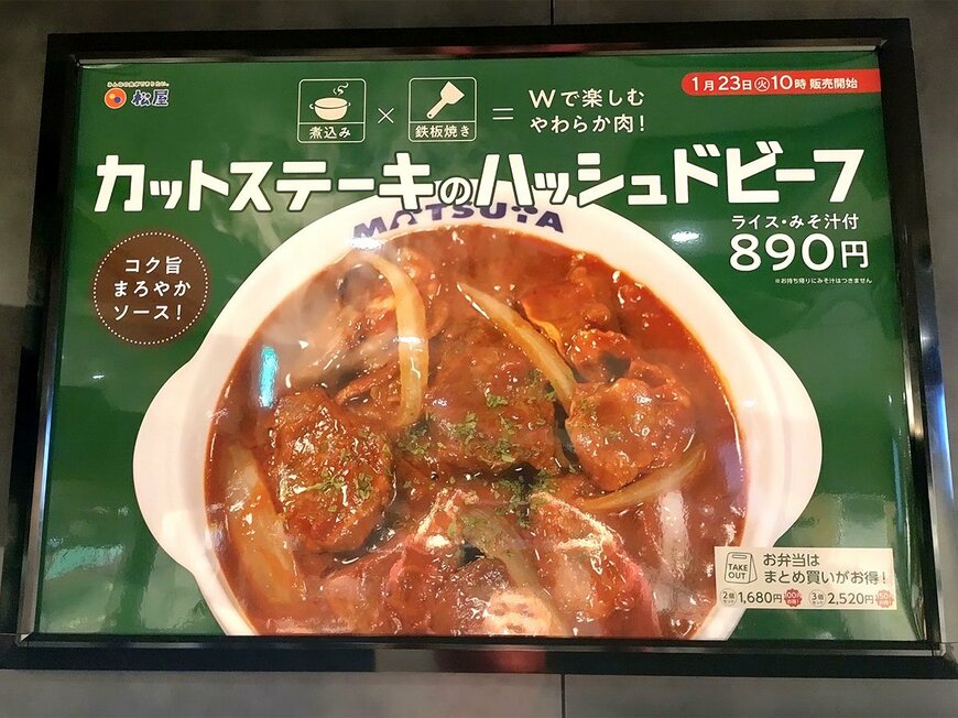 牛丼チェーン店・松屋では1月23日(火)より「カットステーキのハッシュドビーフ」を販売しています。