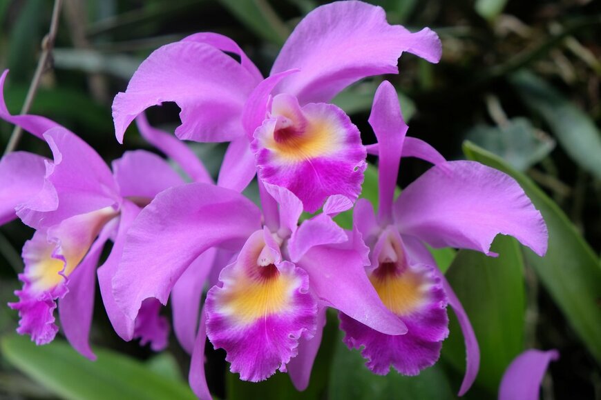 カトレアは花の豪華さから「洋ランの女王」と賞賛され、大輪からミニ種まで品種も豊富。贈答用やコサージュなど、さまざまなシーンでよく見かけるランです。