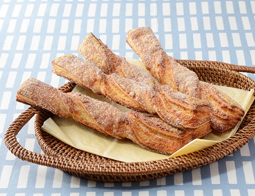 「おやつ感覚で食べられるスティックタイプの甘いパイ。」