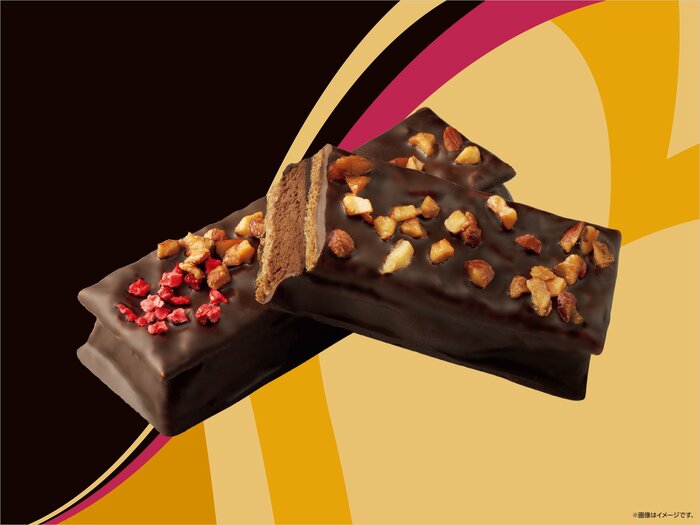 「ゴディバコラボレーション商品。ショコラの味わいが口に広がるテリーヌにアーモンドの彩りと食感をプラス。濃厚なショコラテリーヌをクッキー生地でサンドしました。」