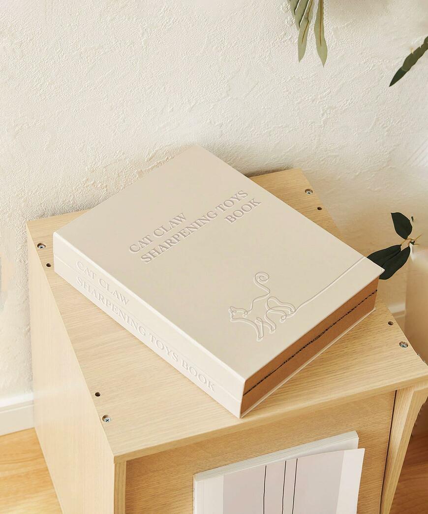 3COINSの「BOOK型爪研ぎ」は、閉じればインテリアアイテムとして使うこともできます。閉じてしまえば生活感を隠してくれます。急な来客にもきちんと対応することができそうです。
