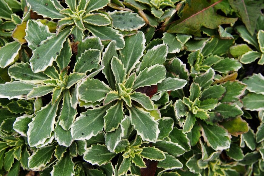 斑入りの品種を選ぶと、華やかで明るい雰囲気になります。どちらも鉢の縁側に寄せ、鉢からこぼれるように植えると見映えがよくなります。