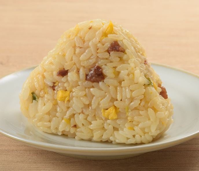 「玉子、チャーシュー、ねぎなどシンプルな具材とご飯を醤油で香ばしく炒めたチャーハンをおにぎりにしました。」