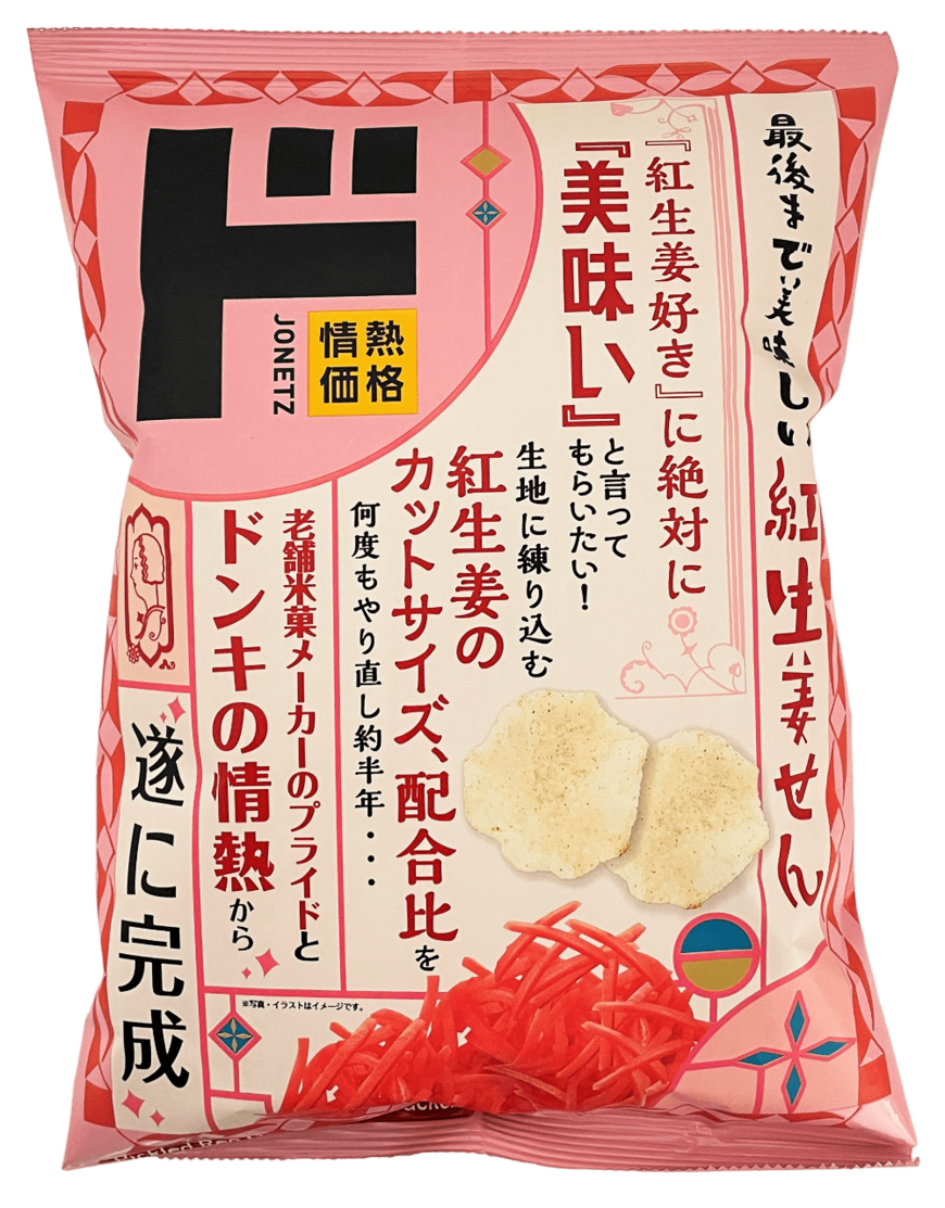 最後まで紅生姜の味が感じられることはもちろん、続けて食べずにいられなくなるような、生地に練り込む紅生姜のサイズや比率を探し当てるため、半年間かけて開発したというこだわりの光る美味しさです。