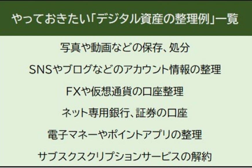 遺された家族が困ることのないよう、生前にデジタル資産を整理するとともに、エンディングノートや財産目録に、それらのID・パスワードの情報を記しておくことがおすすめです。