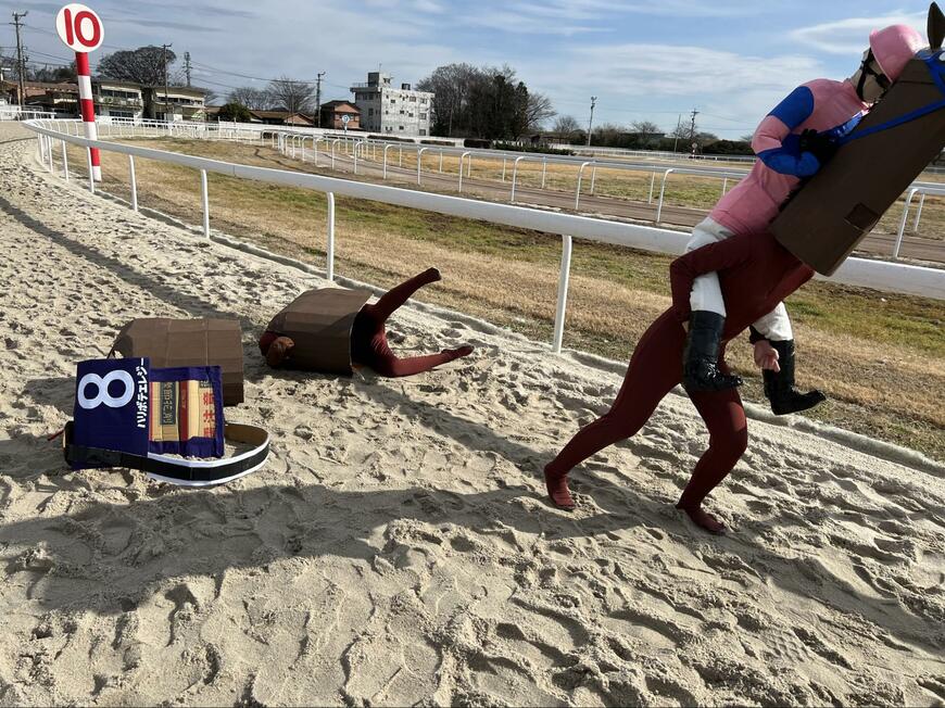 Yuさんがハリボテエレジーとなって参加したのは、令和6年1月28日に岐阜県でおこなわれた、「笠松町『仮装の宴2024』in笠松競馬場」。