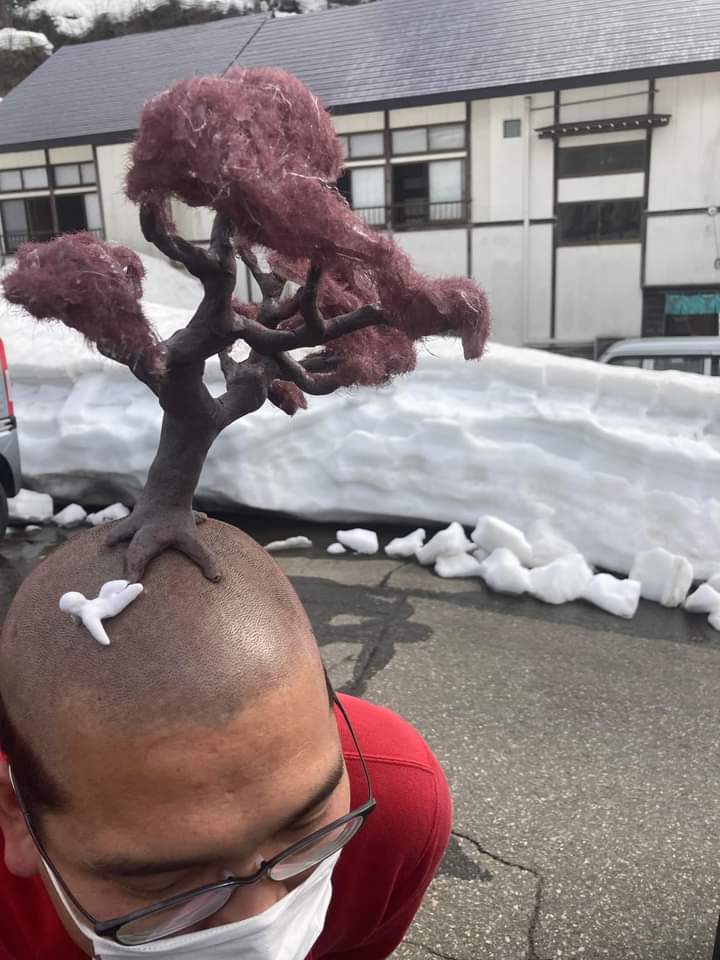 普段の旦那さんは、外見も中身もユニークな方なのだとか。頭の毛を使って遊ぶ「頭で遊ぶシリーズ」という作品を作っており、おもしろいアイデアにあふれる髪型も話題になっています。鬼の仕上がりが高いのも納得できますね。