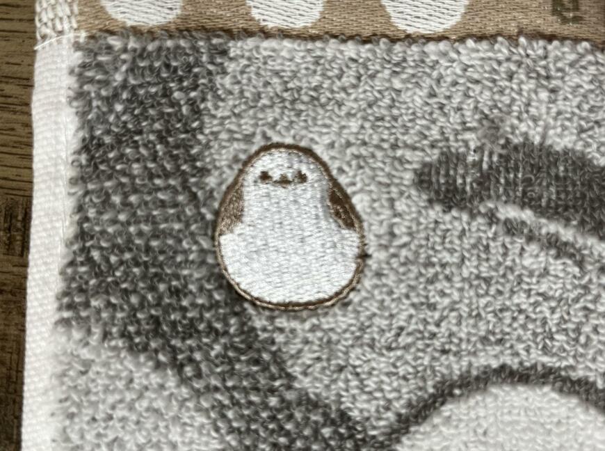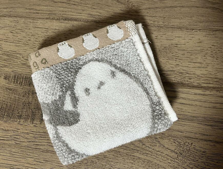 シマエナガのタオルハンカチには、縁取り部分にもかわいらしいシマエナガが登場しています。細かい部分まで素敵なアイテムです。
