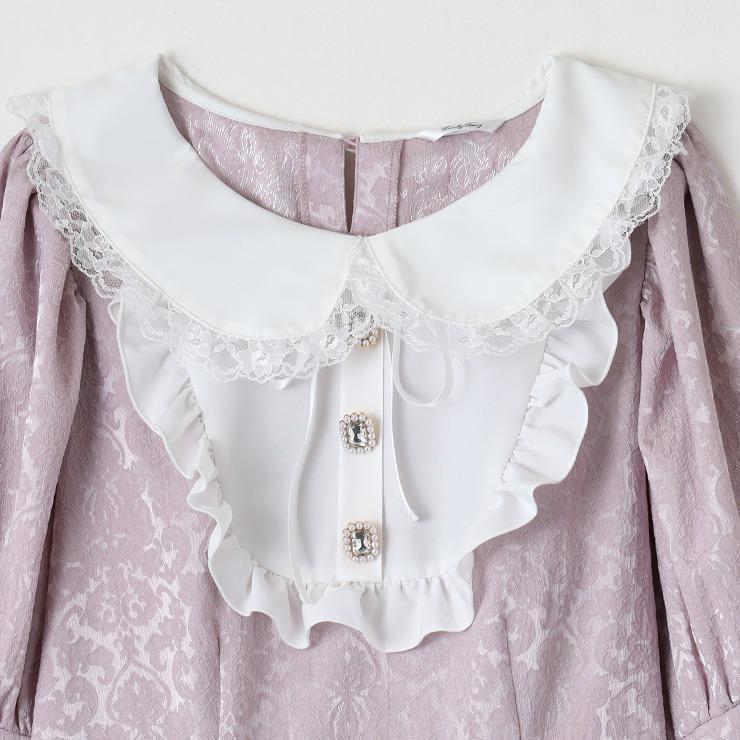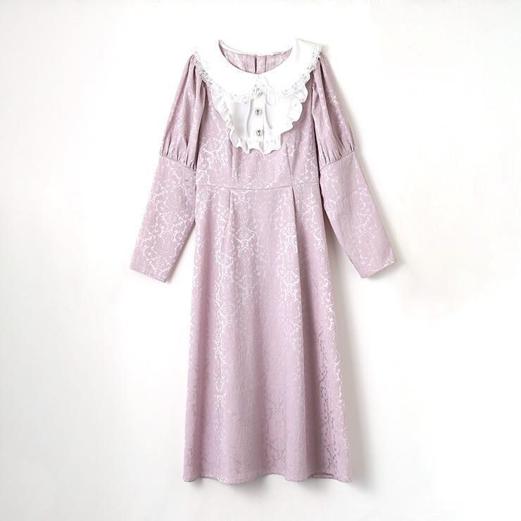 ヨークと丸襟が愛らしいです。まるでドレスのようなワンピースです。着用するだけで、気分をあげてくれそうです。特別な日に使いたい1枚といえるでしょう。