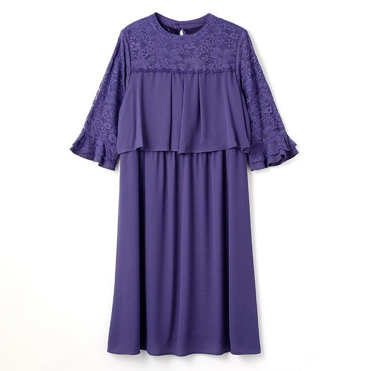 3. 式典にも使えそう! 凹凸感あるレースが華やかすぎるワンピース