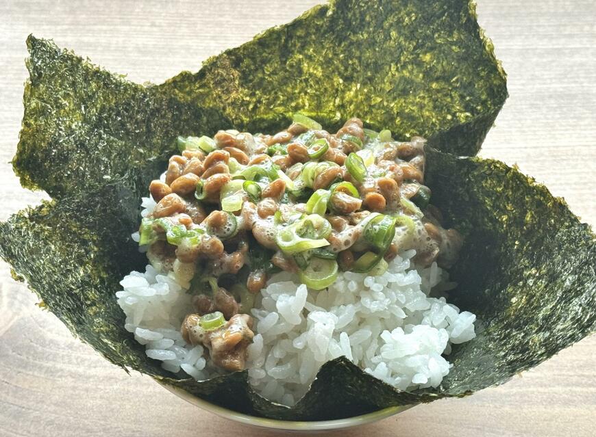 そんなイライラを解消してくれるのがこの食べ方!海苔を敷くことで茶碗が汚れず、さらに最後は海苔を巻いて食べれば納豆巻きが味わえるといううれしい特典付きです。