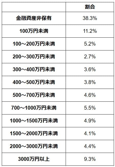貯蓄が全くない(非保有)世帯は全体の4割弱となりました。