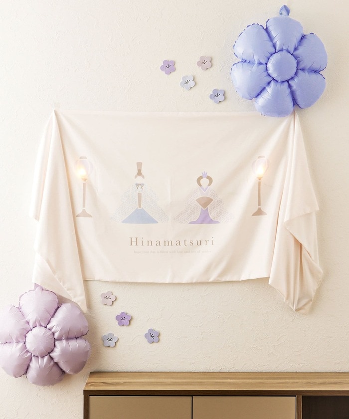 ひな祭りの飾り付けにぴったりなタペストリーです。電池を入れてスイッチをオンにすると、イラストのぼんぼりが光ります。サイドに電池ボックスをしまえるポケットが付いているので見た目もスッキリ。両端を垂らすように飾り付けると、立体的な装飾になりおしゃれさもアップしそうですね。