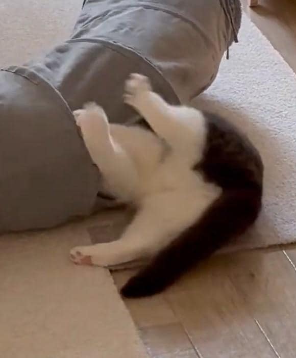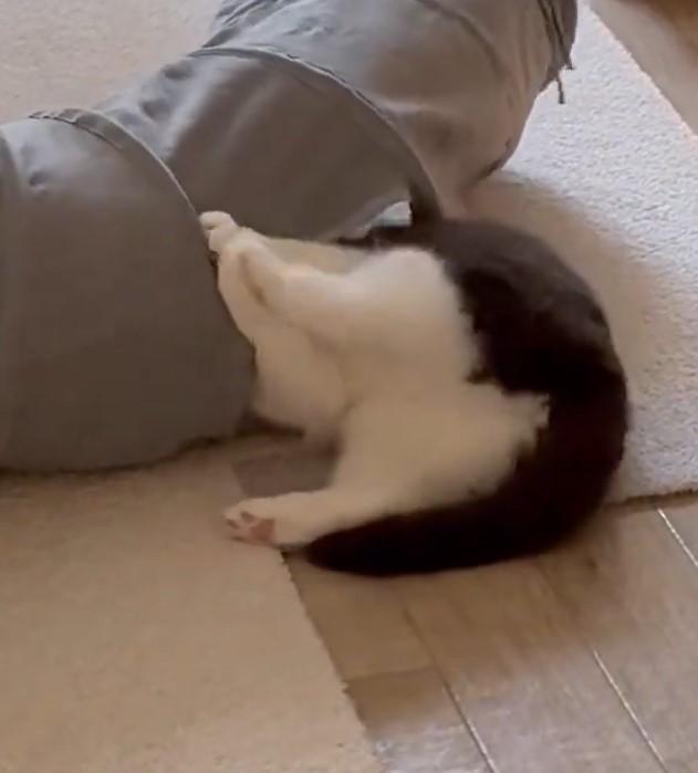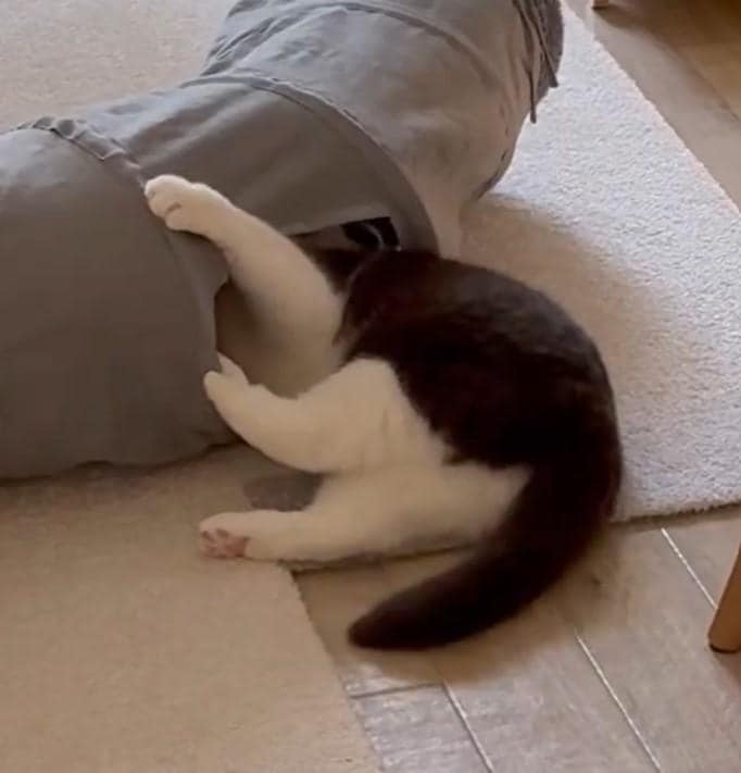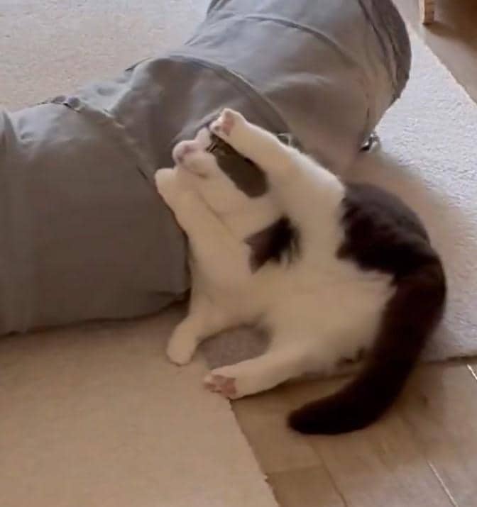遊びに夢中になる猫ちゃん。面白かわいい「不思議な動き」がX(旧Twitter)で注目を集めています。