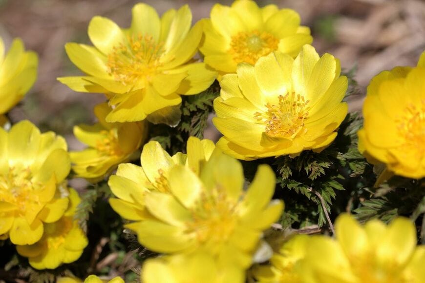 冬から早春にかけて、鮮やかな黄色い花を咲かせるフクジュソウ。多年草ですが、花後に葉が枯れ、翌年の冬まで長い休眠に入ります。冬になると、開花に向けて少しずつ蕾を膨らませる、かわいらしくたくましい姿も魅力です。