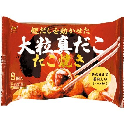 噛み応えのある大粒の真だこが入った、紙トレーごと電子レンジで温められるたこ焼き。とろとろのやわらかい生地には、風味豊かな鰹だしがしっかり効かせられており、ソースなどをつけなくてもおいしく食べられます。