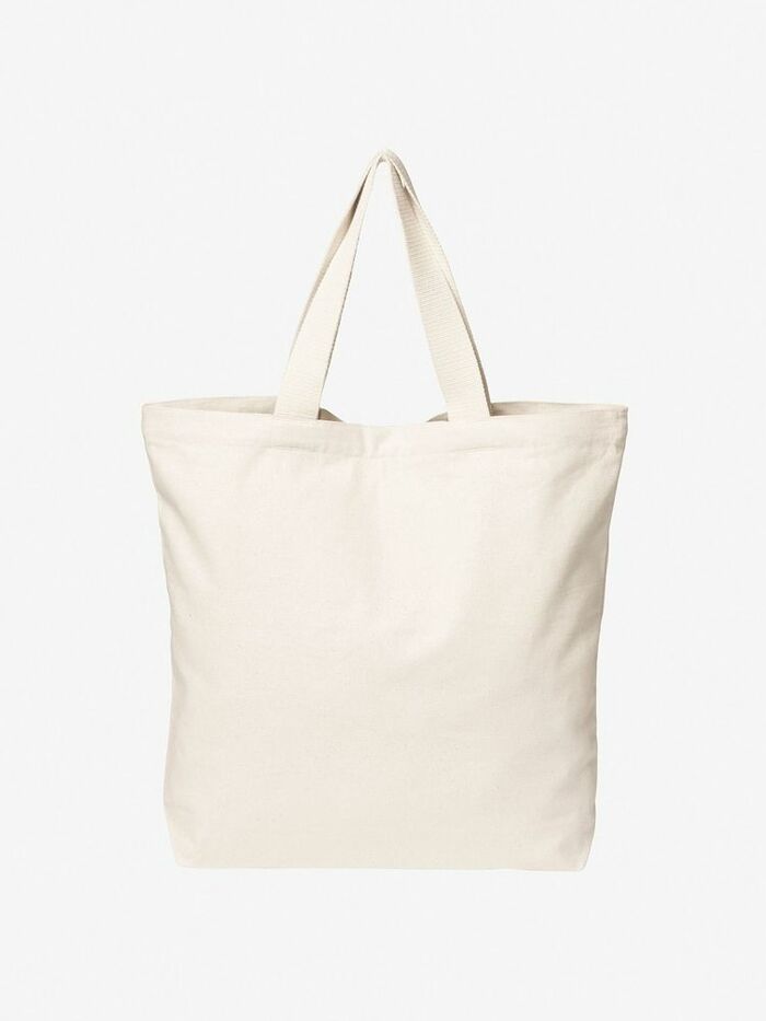 コットン素材にプリントされた、大きなブランドロゴが印象的なトートバッグ。荷物の出し入れがしやすい、大きな間口が特徴です。