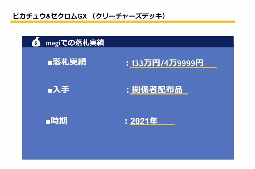 なかなか市場に出回らない限定品であること、大人気キャラクターであるピカチュウとゼクロムの二体がひとつのカードにいることから、かなり高額でのやりとりが行われています。