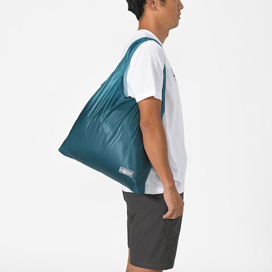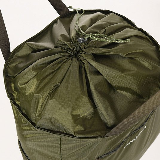 開口部は、ドローコード付きフラップにより、荷物の落下を防いでくれます。普段の買い物はもちろん、小さく折りたためるので、アウトドアや旅行にも一つあると便利なバッグです。
