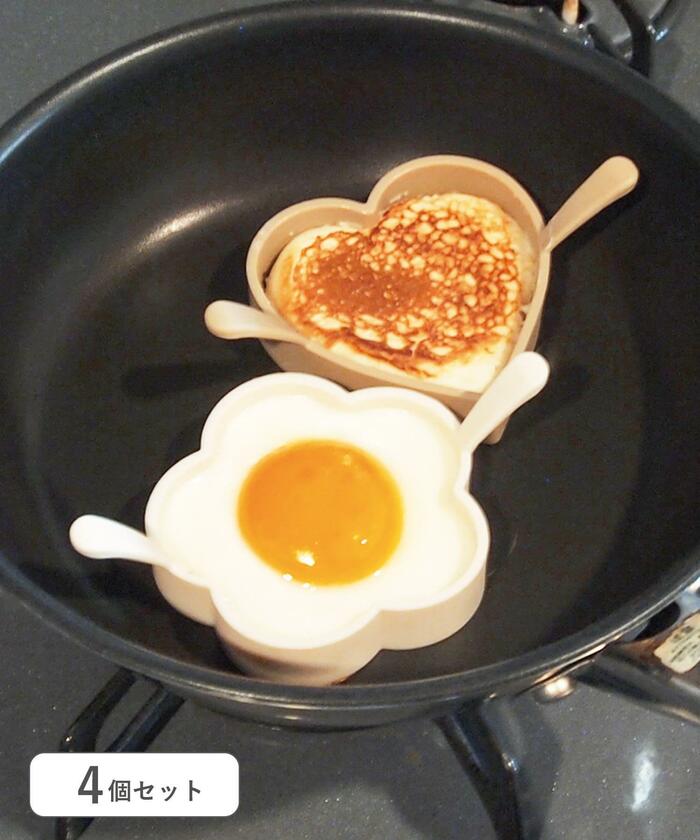 かわいらしい目玉焼きや卵焼き、パンケーキを作ることができます。ハート型とお花型のセットです。