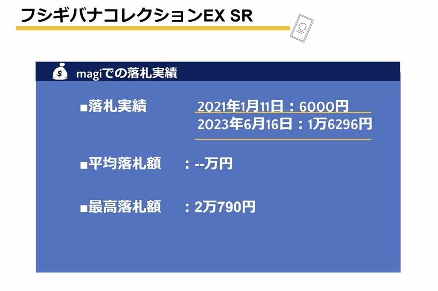 2024年2月までのカード単品の最高落札額は「フシギバナEX【SR】{088/087}:2万790円」です。
