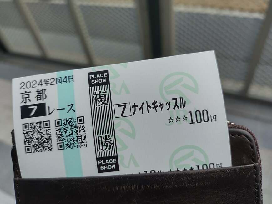 1発目の大勝負は、2月4日京都7レース4歳以上1勝クラス(ダート1800m)。そううんさんが購入したのは、2番人気のナイトキャッスルの複勝100円でした。