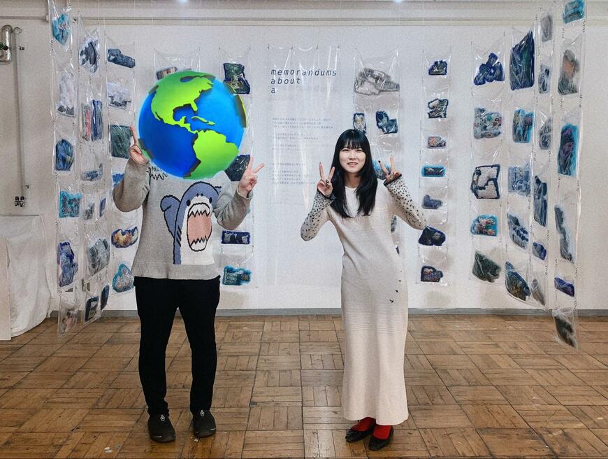 そこに収められていたのは、作品の前でポーズをとる2人の姿。