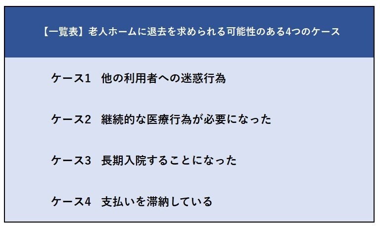 2. 【一覧表】老人ホームから「退去を求められる可能性がある」4つのケース