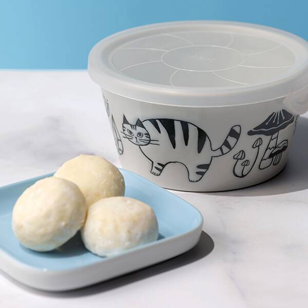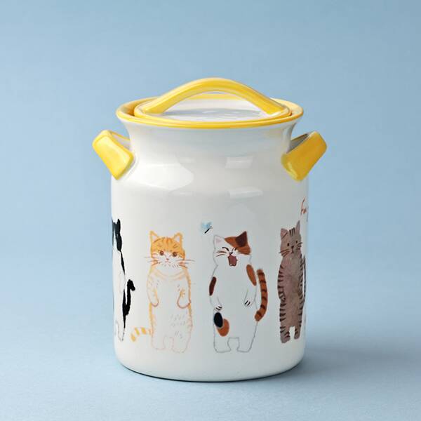 ネコが描かれた陶器製のキャニスターのなかに、クッキーが詰められています。お菓子を食べ終わったら小物入れなどにして楽しんでくださいね。
