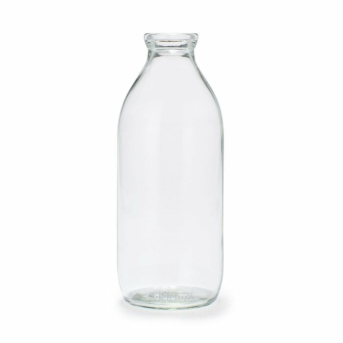 900mlの業務用の牛乳びんです。高さも重さもあるので、大きなお花を飾っても倒れません。透明なびんは見た目がおしゃれなだけでなく、水の残量確認も簡単に行えます。