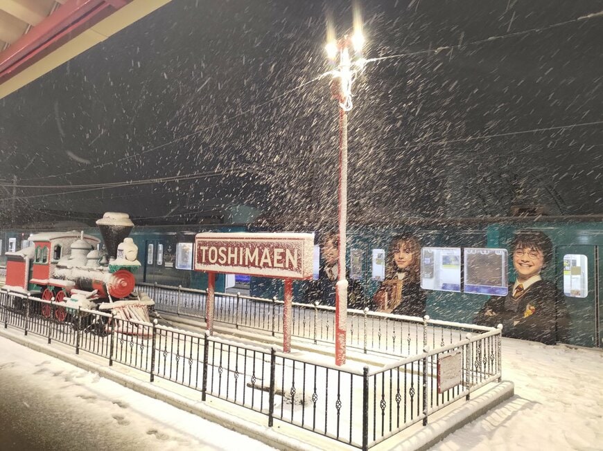 そこには、雪の影響で幻想的な雰囲気に変わった豊島園駅の様子が映し出されていました。ハリーポッターの舞台となったイギリスらしい風景だと思った方も多いのではないでしょうか。