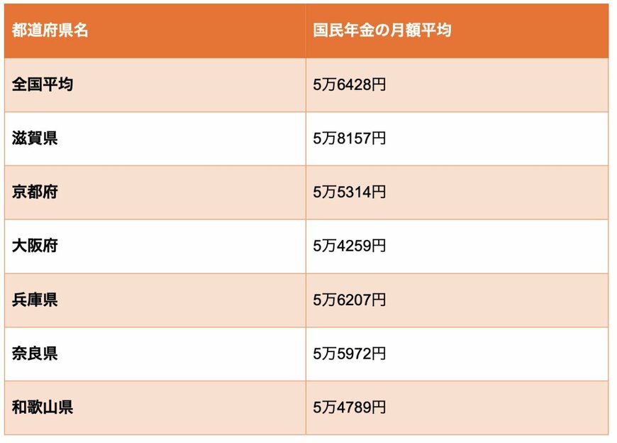 関西6府県の国民年金の金額と全国平均は【図表1】にまとめました。
