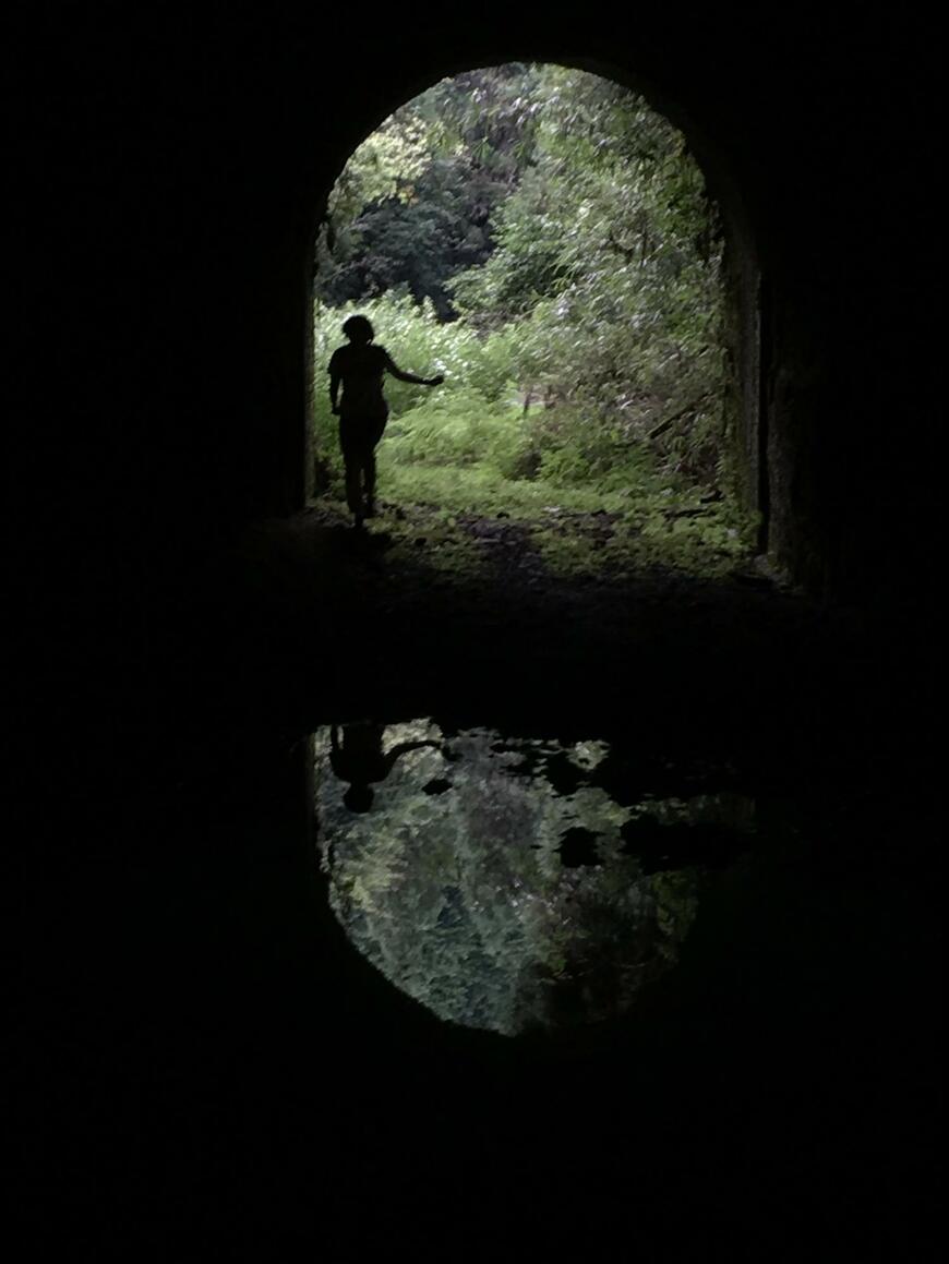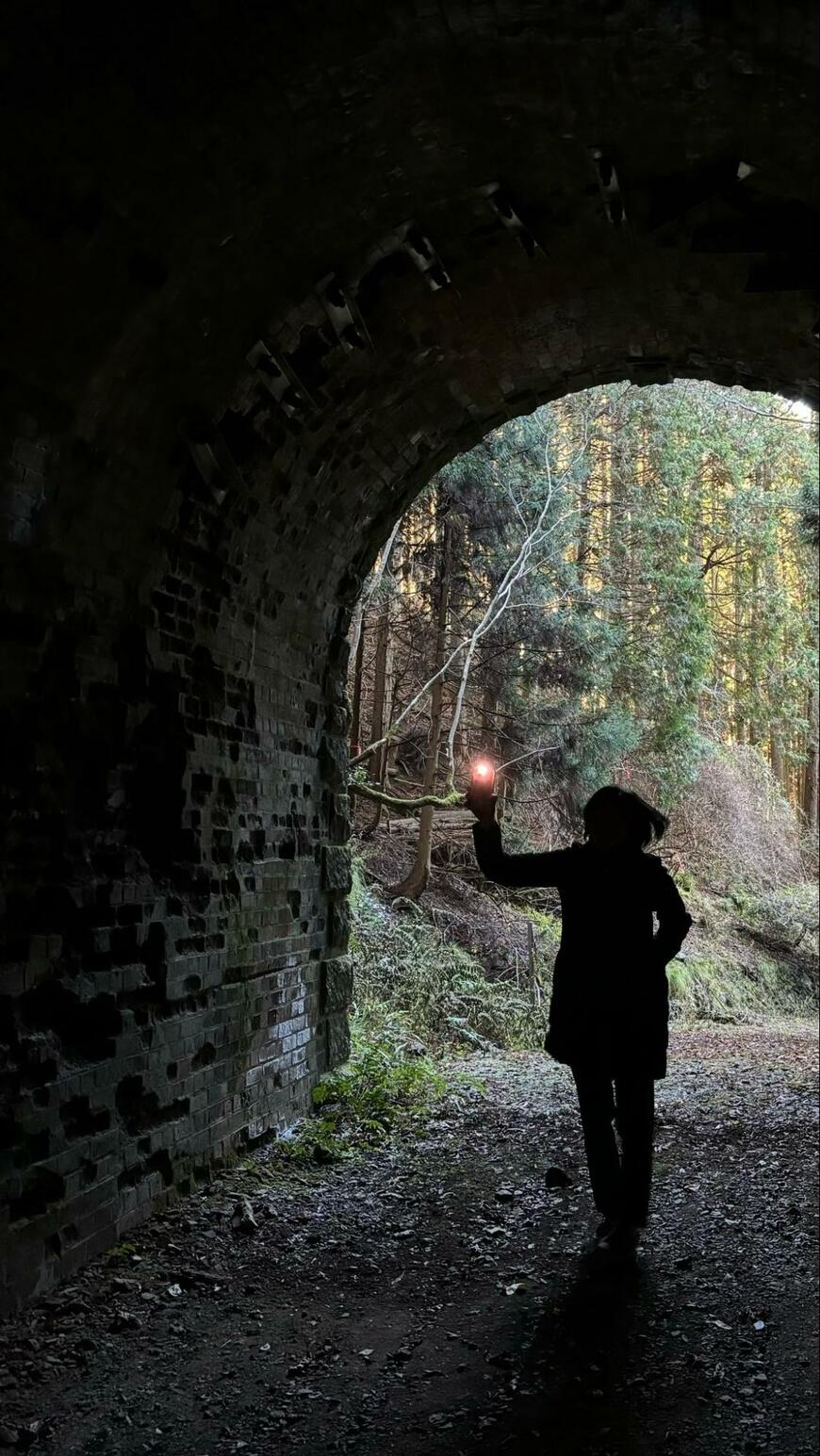 そんなコメントとともに投稿されたのは、一枚の写真でした。そこに写っているのは、暗いトンネルの中でライトを照らす、女性の姿。
