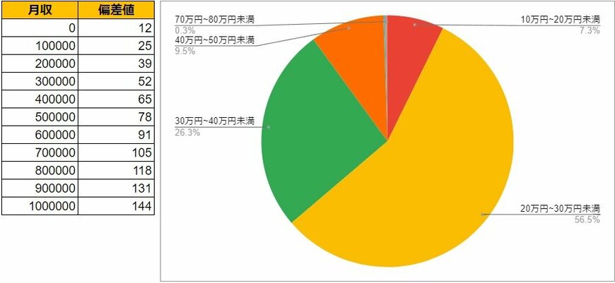 本記事における月給別偏差値と月給分部表の算出は以下の手順で行っています。