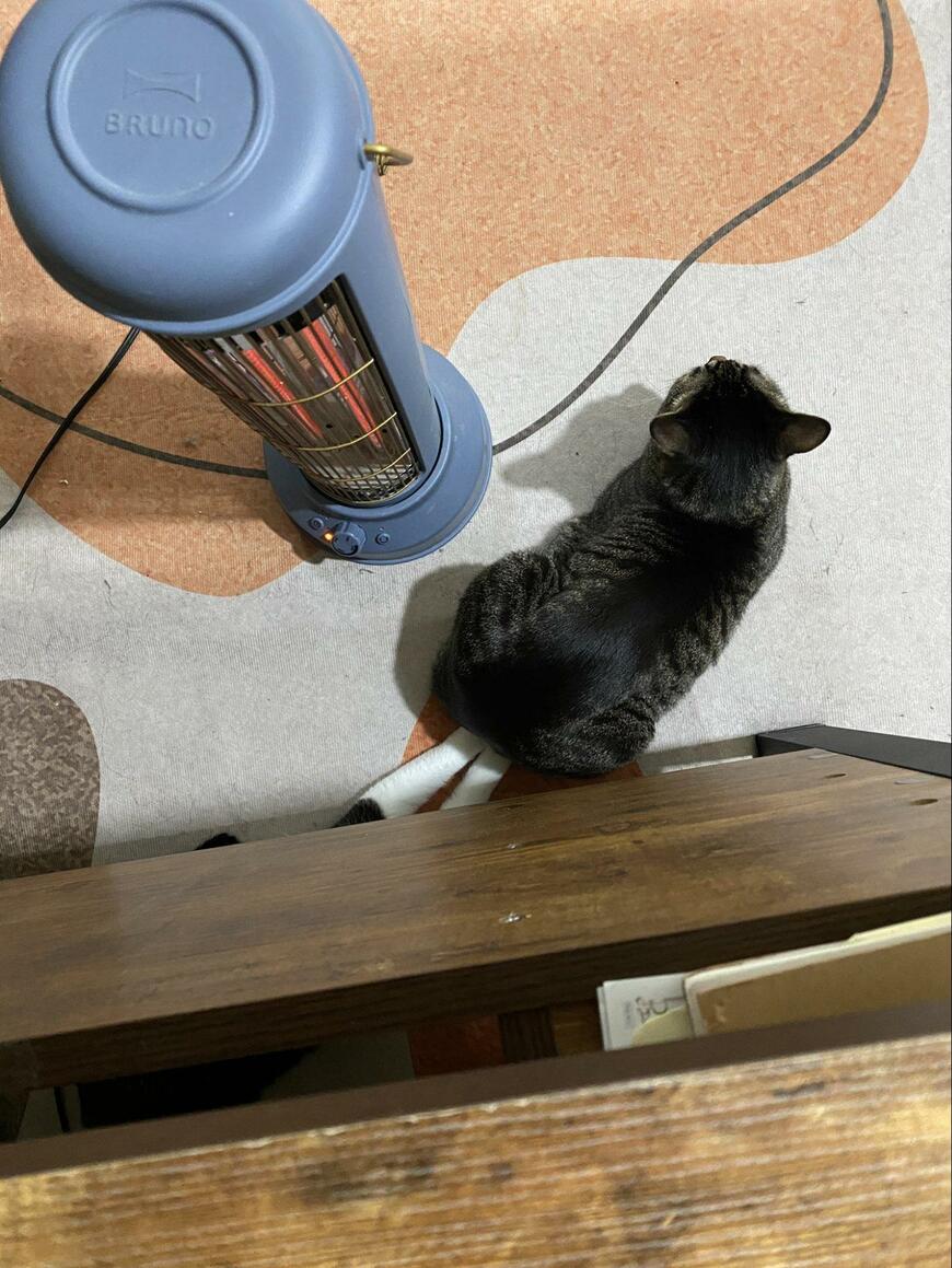 かわいい両手を刺されているシイタケくんは、動じる素振りを見せないどころか、マイペースにストーブで暖を取っているようです。かわいい二匹のワンシーンに、ホッコリとした気持ちになりますね……!
