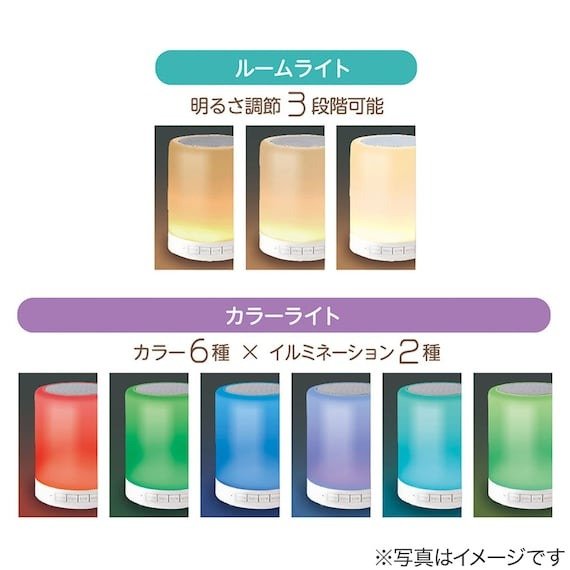 - 連続使用時間:ルームライト(弱点灯時)約4時間/スピーカー約2.5時間/ルームライト(弱点灯時)+スピーカー約1.5時間(使用環境により異なる)