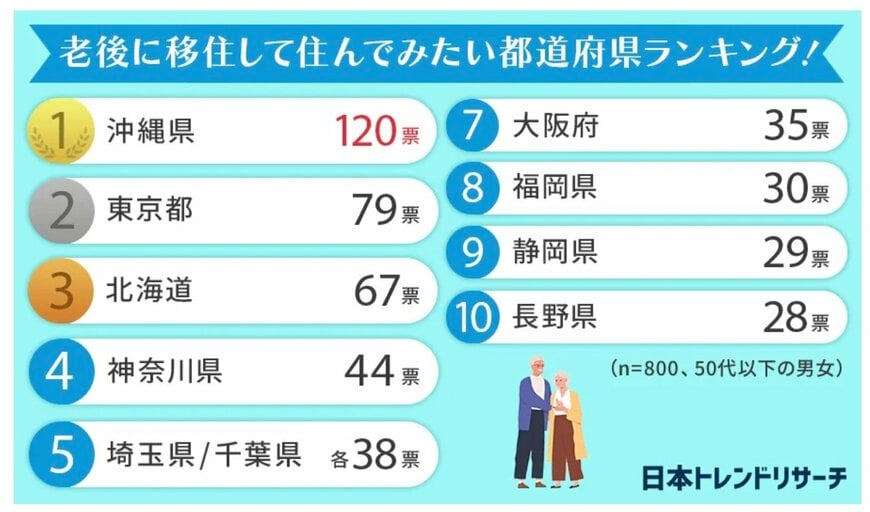 日本トレンドリサーチは、株式会社ロゴスホームと共同で「老後に移住してみたい都道府県」に関するアンケートを実施しました。
