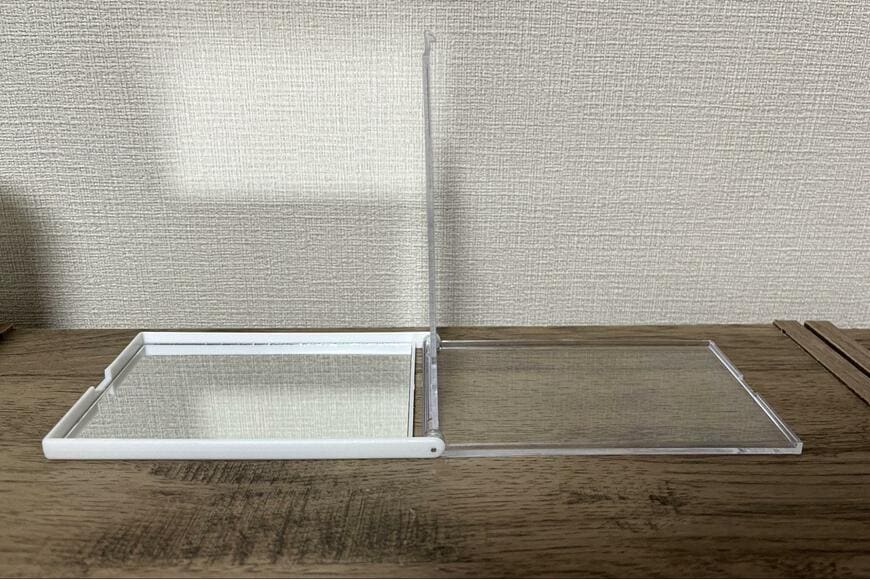 ミラーのフタ部分が写真のように2層になっています。こちらに推しの写真などを入れることで、推しデザインのミラーを作ることができます。推しと一緒にお出かけすることができるアイテムです。