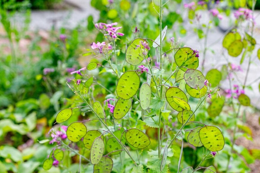 春に香りが良いカワイイ花が、初夏にはユニークな形をしたサヤの鑑賞が楽しめるルナリア。丈夫で育てやすく、二年草ながらもこぼれ種で開花するほど強靭な性質を持っています。
