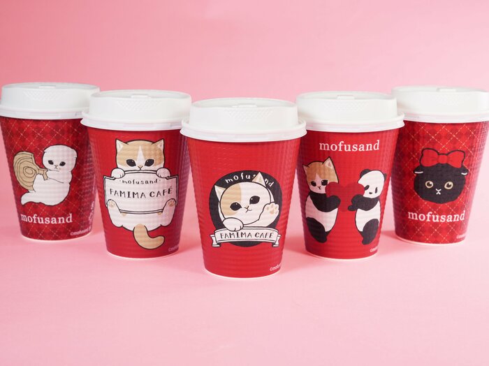 「「FAMIMA CAFÉ」ブレンドM・カフェラテM(コラボカップ)は「mofusand」とコラボレーションしたカップで、全5種類です。」
